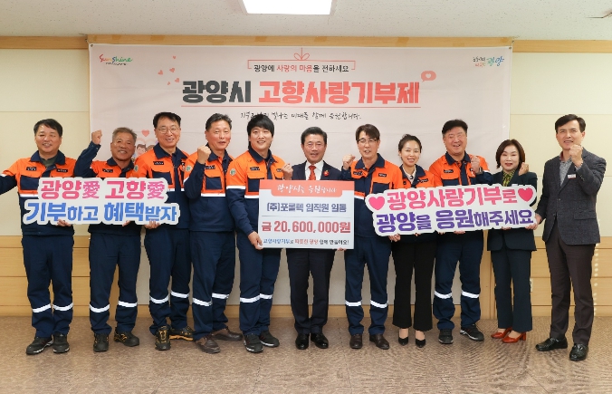 김재열 회장은 “고향사랑기부로 광양과 포항에서 자주 뵙고 하니 정말 가족과 같은 느낌이 든다”며 “어려운 상황 속에서도 포항시와 광양시의 상생협력을 위해 기부 행사에 참여해 나눔을 실천해 준 임직원 여러분께 진심으로 감사하다”고 소감을 밝혔다.