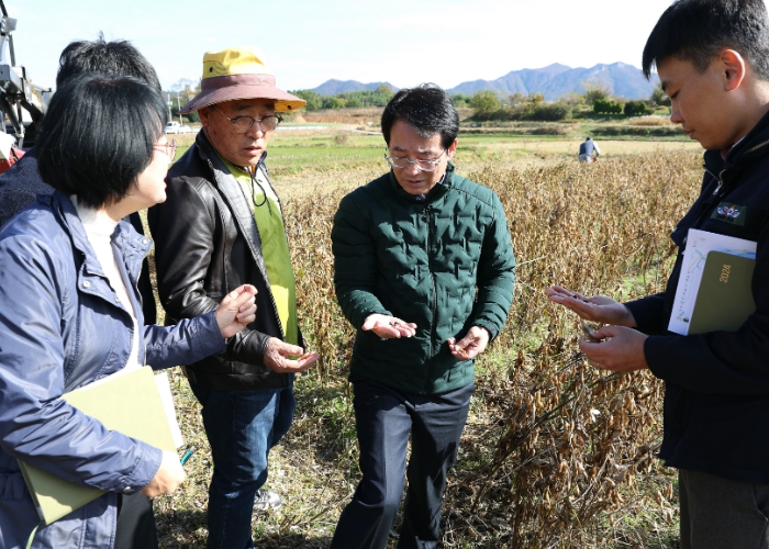 수확 현장에서 만난 서리태연구회 송옥철 회장(62)은 “기존 재래종 서리태는 적은 수량과 늦은 수확기 등의 단점이 많아 논 재배가 어려웠는데, 올해 성공적인 신품종 서리태(청자5호) 재배를 통해 자신감을 얻는 계기가 됐다”며 전폭적인 면적 확대 의지를 내비쳤다.