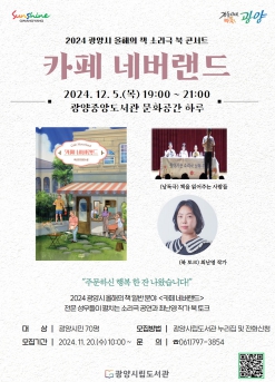 광양중앙도서관은 광양시민 70명을 선착순으로 모집한다. 모집 기간은 11월 20일부터다. 공연은 광양시립도서관 누리집의 ‘독서‧문화마당’-‘수강신청’을 통해 신청할 수 있으며 유선 전화로도 신청할 수 있다.