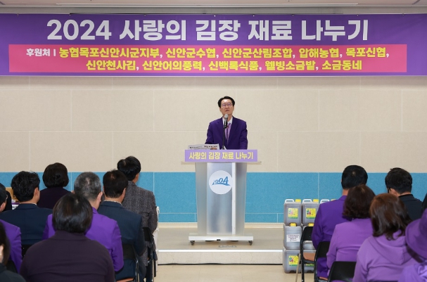 박우량 신안군수는 “매년 김장재료 나눔에 참여해 주신 후원자 및 기관에 깊이 감사드린다.”라며 “여러분의 따뜻한 나눔에 힘입어 어려운 이웃과 함께하는 신안이 될 수 있도록 최선을 다하겠다.”라고 전했다.