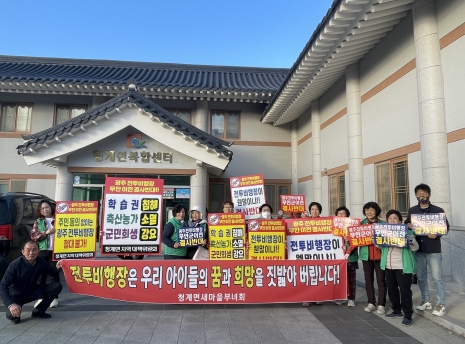 박란임 새마을부녀회장은 “광주 전투비행장은 소음피해가 크며 지역 상권을 쇠퇴시킬 뿐만 아니라 미래 세대의 교육환경도 악화시키는 위협요인”이라면서 “앞으로도 청계면 부녀회는 전투비행장 이전 반대 활동을 꾸준히 전개하여 우리 후손들이 살아갈 지역을 지켜 나가겠다”고 말했다.