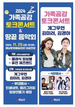 또한 2부에서는 개그우먼 김미려, 김경아가 육아로 지친 부모들에게 웃음과 위로를 전하는‘가족 공감 토크 콘서트’가 열린다. 토크쇼와 퀴즈쇼 등 다양한 코너로 관객들과 소통하고 자신들이 직접 겪은 육아 에피소드를 유쾌하게 풀어내며 공감과 웃음을 이끌어낼 예정이다.