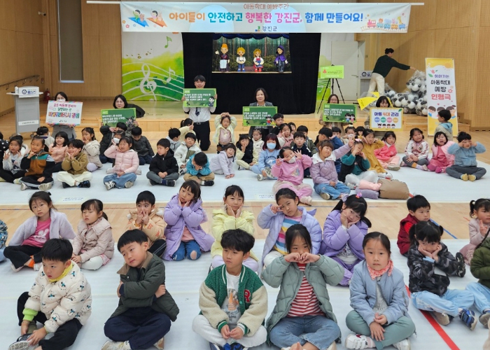 군은 지난 19일 강진군청소년수련관에서 '아이들이 안전하고 행복한 강진군, 함께 만들어요'라는 슬로건 아래 아동학대 예방사업을 안내했다. 관내 어린이집 아동 및 교사 100여 명은 헨젤과 그레텔을 각색한 인형극을 관람하고 풍선아트로 즐거운 시간을 보냈다. 또한 아동복지 증진을 위해 힘쓴 3명에게 유공자 표창을 수여했다.