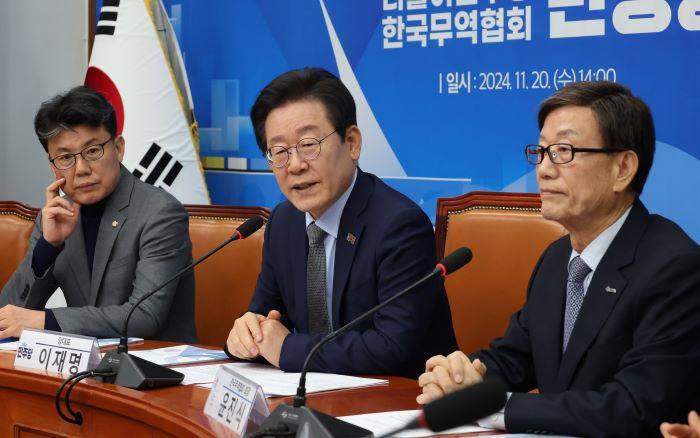 이 대표는 대여 투쟁과 다소 거리를 두는 민생 행보에 주력하고 있다. 이날 수원 전통시장을 찾아 소상공인·자영업자들을 만나 민심을 청취한다. 전날 주식 투자자 간담회와 윤진식 한국무역협회 회장 면담을 가진 데 이어 이틀 연속 나선 민생 행보다. 이 대표는 지도부 회의에서도 재판 언급을 삼가는 대신 외교·안보·경제 관련 메시지를 내는 데 집중하고 있다.