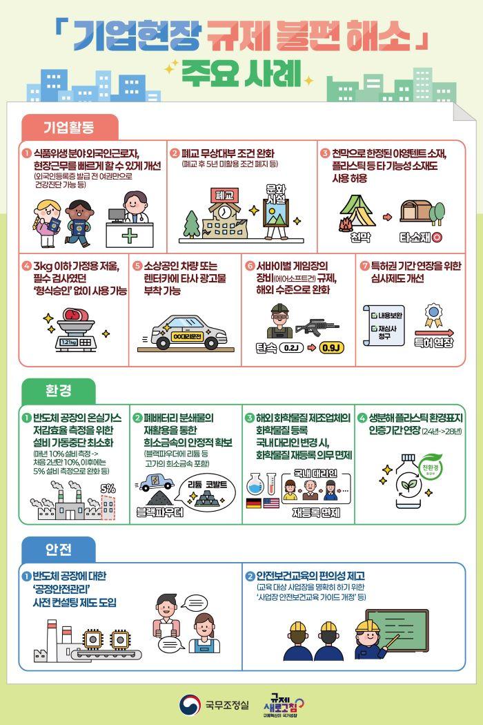 먼저 기업활동 분야에서 7개 규제 개선이 이뤄졌다.