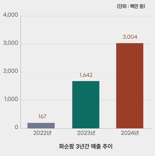 2008년 개설된 화순팜은 민선 8기 공약사항으로 화순팜 활성화를 추진한 결과 전년도에는 매출 16억 원을 달성했고, 올해는 역대 최고인 30억 원을 달성했다.
