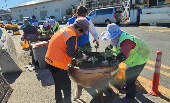 이날 화정면은 공공근로·노인일자리 참여자, 여수르네상스시민운동 화정면 실천본부, 면사무소 직원 등 40여 명과 유동 인구가 많은 백야항, 여객선터미널, 화백마을 진입로 등에 겨울꽃을 심어 생동감 넘치는 거리를 조성했다.