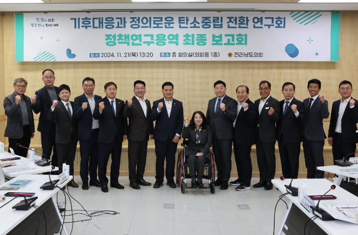 또한, 연구회 위원들은 “이번 연구를 통해 도내 정의로운 탄소중립 전환을 위한 사회적 대화 기구의 필요성과 역할에 대해 깊이 공감한다”며, “연구에서 도출된 다양한 방안을 실제 정책에 반영하기 위해서는 도의회와 전남도의 협력이 필수”라고 입을 모았다.