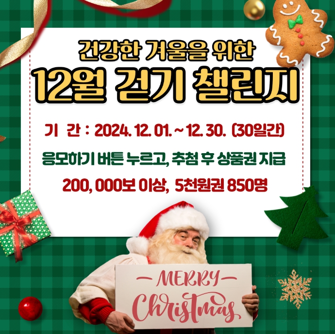 서영옥 건강증진과장은 “건강을 지키기 위한 꾸준한 걷기 습관 정착으로 지역사회에 건강한 걷기 문화가 조성되길 바란다. 추운 날씨에 대비해 모자와 장갑을 착용하고 준비운동 후 걷기를 권장한다”고 말했다.