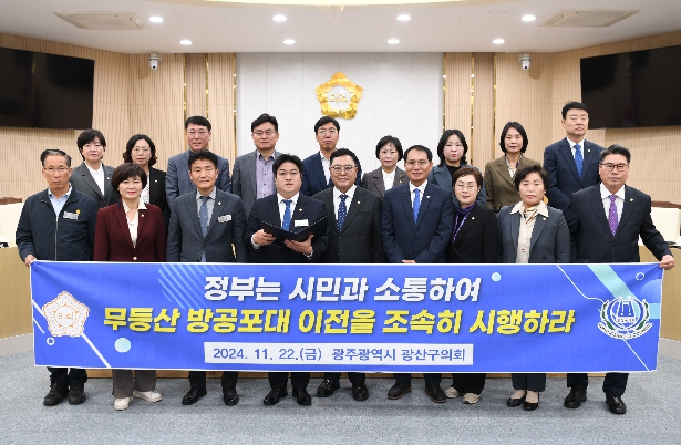 성명서를 대표 발표한 박해원 의원(더불어민주당, 첨단1·2동)은 “방공포대의 대책 없는 이전은 또 다른 갈등과 반목을 일으킨다”며 “국방부가 군사기밀이라는 이유로 이전 대책 관련해 지자체에 전혀 공개 하지 않는 ‘깜깜이 행정’을 하고 있고, 시민들은 답답해하고 있다”고 지적했다.