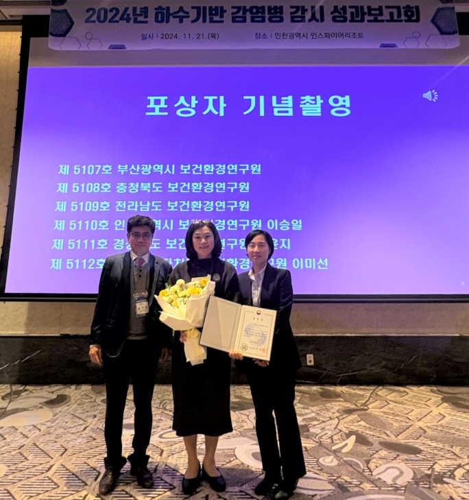 이번 우수기관상은 전국 17개 시·도에서 실시 중인 ‘국가 하수 기반 감염병 감시체계 구축 및 운영’에 대한 평가다.