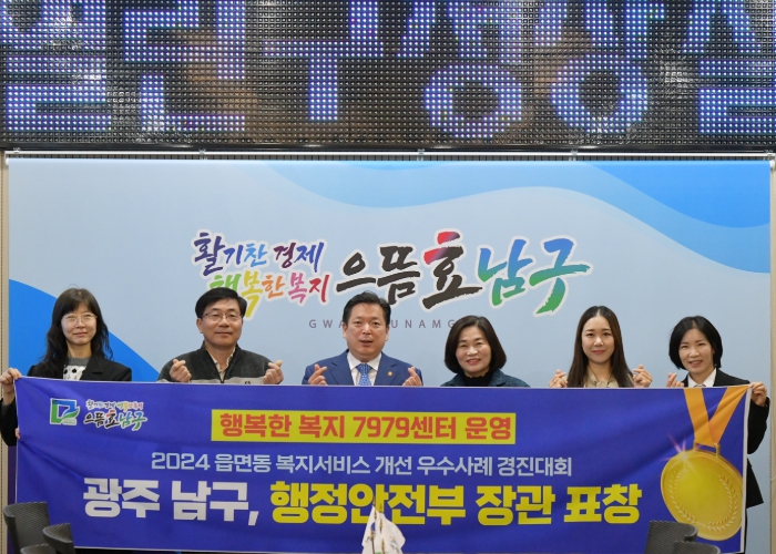 남구는 25일 “이번 경진대회에서 광주에서는 유일하게 행복한 복지 7979센터 사업이 복지 분야 우수사례에 이름을 올렸다”면서 “행안부 장관 표창과 함께 특별교부세 2,200만원을 받는다”고 밝혔다.