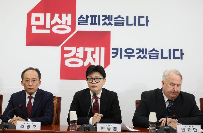 그는 "오늘 이재명 더불어민주당 대표의 위증교사 범죄 혐의 사법부 판결이 오후에 예정돼 있다"며 "저희는 민생에 집중하겠다. 민생 회복과 경제 발전의 모멘텀이 필요하고 지금 바로 만들어내야 한다. 경제를 우상향하고 그 과정에서 격차 해소도 반드시 이뤄내야 한다"고 강조했다.