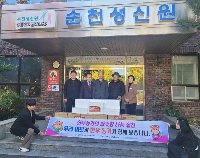 한편 (사)전국한우협회 순천시지부는 101농가가 회원으로 참여하고 있으며 한우산업의 발전과 회원농가의 공동이익 증진뿐 아니라 지역사회 복지시설 및 어려운 취약계층에게 꾸준히 온기나눔하고 있다.