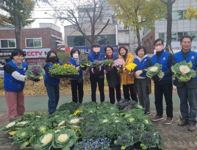 충효로의 24개 화분은 바르게살기위원회가, 연향3지구의 24개 화분은 부녀회가 정성껏 꽃양배추를 심어 도로변을 화사하게 꾸몄다.