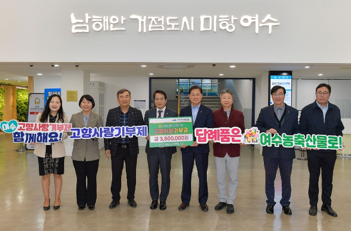 여수시에 따르면 NH농협 재경 여수시향우회원 29명이 고향을 응원하는 마음을 담아 마련한 고향사랑기부금 350만 원을 시에 전달했다고 밝혔다.
