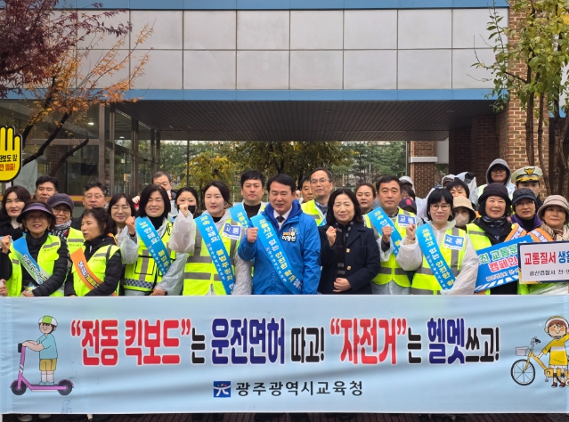 이번 캠페인에는 이정선 교육감을 비롯해 광주서부교육지원청, 장덕초등학교, 광산구청, 광주광산경찰서 및 전·의경회 교통단체, 광주녹색어머니연합회, 어울림사랑나눔봉사회 관계자 등 40명이 참여한 가운데 현수막 등을 활용해 어린이가 지켜야 할 교통안전 수칙을 안내했다.