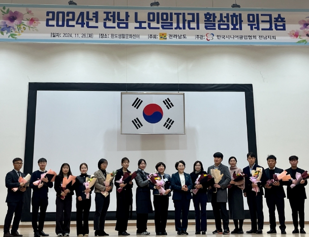 이상심 전남도 보건복지국장은 “이번 워크숍이 노인일자리사업 활성화에 기여하고, 그동안 최일선에서 수고한 종사자들에게 격려와 힐링의 시간이 됐길 바란다”며 “앞으로도 노인일자리를 지속적으로 발굴하고 지원해 한층 더 따뜻한 전남 행복시대를 열겠다”고 말했다.