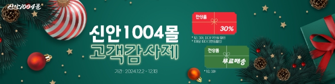 신안군 관계자는 “신안1004몰 회원들의 꾸준한 관심에 보답하고자 고객 감사제를 마련하게 됐다”라며, “신안의 우수한 농수특산물의 다양한 품목과 혜택으로 고객들에게 더욱 풍성한 연말 쇼핑 경험을 선사할 것이다”라고 전했다.