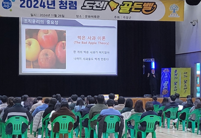 이날 행사 전 국민권익위원회 청렴연수원의 정경채 강사가 청렴교육과 문제 해설을 진행하여 직원들의 이해도를 높였다.