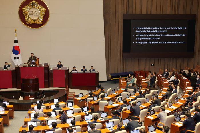 앞서 여야는 윤 대통령의 재의요구권 행사로 국회로 돌아온 김 여사 특검법을 내달 10일 재표결에 부치기로 했다. 당초 오는 28일 본회의에서 재표결이 예상됐지만, 민주당이 친한(친한동훈)계 이탈표 등을 의식해 재표결 시점을 내달로 미뤘다.