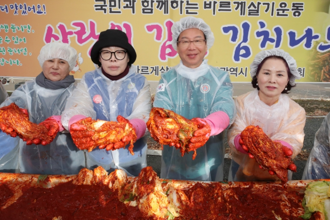 박병규 청장은 이어 운남동에서 진행된 바르게살기운동 광산구협의회 사랑의 김장 김치 나누기 행사에도 참여했다. 이 행사에서 담근 김장 김치 500포기는 돌봄 이웃 150가구에 전달된다.