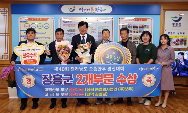 미경산우 부문에서 장평면 ㈜보우(대표 강성수) 농가가 최우수상을, 고급육 부문에서 대덕읍 김성남 농가가 최우수상의 영광을 차지해 ‘정남진 장흥한우 브랜드’ 명성을 이어갔다.