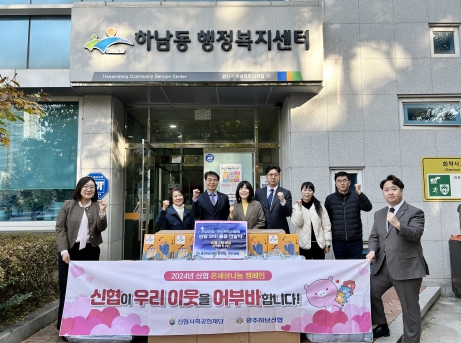 지난 22일 광주하남신협은 ‘2024년 신협 온세상나눔 캠페인’의 하나로 하남동 지역사회보장협의체에 동계 이불 20채(100만 원 상당)를 기부했다. 하남동 지사협은 돌봄 이웃이 따뜻한 겨울을 날 수 있도록 이불을 전달할 예정이다.