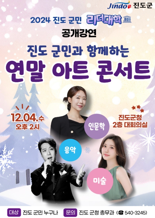 리더 대학의 공개 강연은 사전 신청 없이 누구나 입장 가능하며, 진도군 관계자는“2024년 연말을 맞이하여 군민들과 함께 즐길 수 있는 화합의 장을 마련했으니, 많은 관심과 참여를 부탁드린다”라고 전했다.