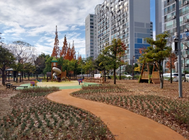 아울러 놀이공간 주변에는 화단을 조성해 다양한 초화류를 심어 자연을 느낄 수 있는 공간이 마련됐다. 향후 유치원 및 어린이집과 연계한 다양한 프로그램이 준비돼 있어 공원 이용 활성화에도 큰 도움이 될 것으로 기대를 모으고 있다.