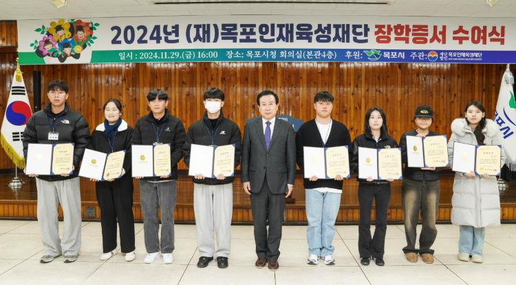 또한, 이날 목포인재육성재단은 이사회를 개최해 2025년 운영계획에 대해서 심의·의결하고, 재단 이사회 후 예체능 우수 중·고등학생 및 우리 지역 대학생을 대상으로 장학증서 전달식을 가졌다.