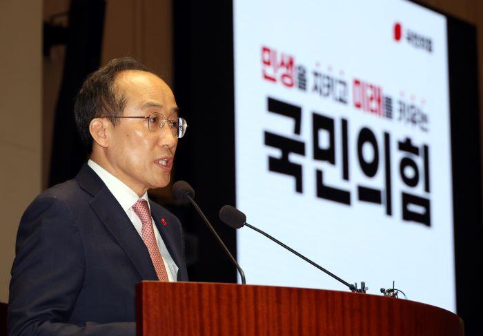 추경호 원내대표는 이날 오전 국회에서 열린 비상의원총회에 참석해 "감사원장, 서울중앙지검장을 비롯한 검사 3명에 대한 탄핵과 함께 지난 금요일 헌정사 초유로 예결위원회 전체회의에서 야당 단독으로 감액 예산안을 날치기 처리했다"고 밝혔다.