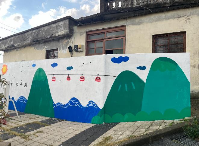 목포시 청소년문화센터는 올 상반기 청소년들의 재능기부로 죽동 주차장의 노후화된 계단을 채색해 활기를 불어넣었으며, 이번에는 목원동 마인계터 마을의 빈 벽에 낭만 항구 목포의 케이블카를 그려 마을을 화사하게 만들어주었다.