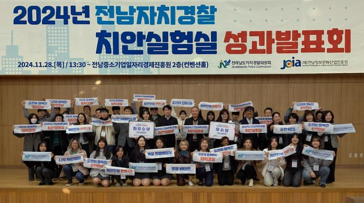 전남도자치경찰위원회는 지난 28일 전남중소기업일자리경제진흥원에서 도민연구반 6팀과 전남자치경찰위원회, 전남정보문화산업진흥원 관계자, 경찰관, 평가위원 등 총 60명이 참석한 가운데 치안실험실 성과발표회 및 시상식을 진행했다.