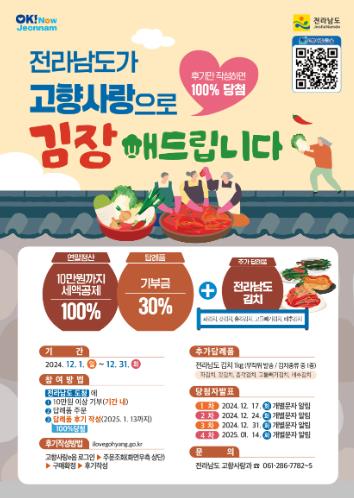 후기 이벤트에 참여한 기부자에게는 기존 답례품 외에 전남 김치 1kg이 추가 답례품으로 제공된다.