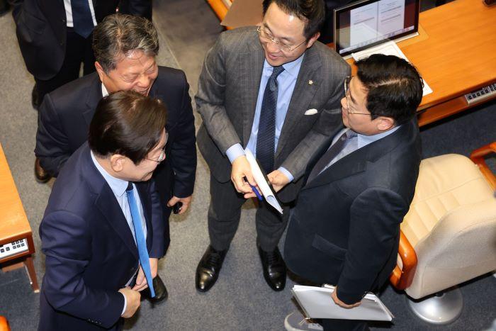 이에 대해 국민의힘은 "이 대표 방탄을 위해 법안까지 입맛대로 고치려는 입법 폭주"라고 비판했다.