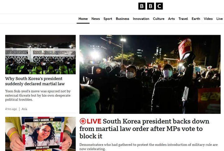 BBC는 다른 주요 외신들과 마찬가지로 계엄령 선포부터 군경 국회 배치, 국회의 계엄령 해제 요구안 긴급 의결, 시민들의 항의 시위, 계엄령 해제까지 긴박했던 한국의 6시간을 실시간으로 타전했다.