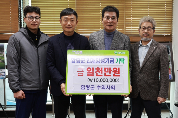 함평군은 4일 함평군 수의사회가 1천만 원, 함평꽃무릇공방 박봉춘 대표가 2백만 원을 함평군 인재양성기금에 기탁했다고 밝혔다.
