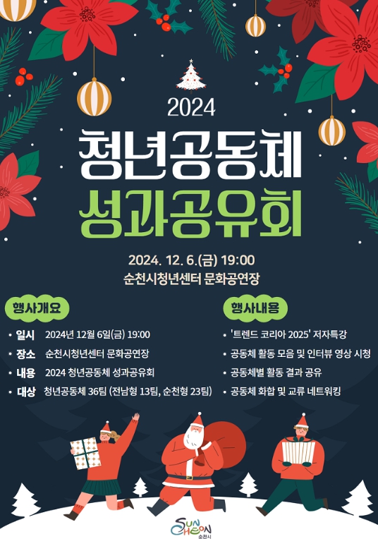 시 관계자는 “이번 성과공유회는 청년들이 지난 1년간 지역 사회에서 이룬 성과를 돌아보고, 그 경험과 활동이 지역 사회에 미친 긍정적인 영향을 되새기는 자리가 될 것”이라고 말했다.