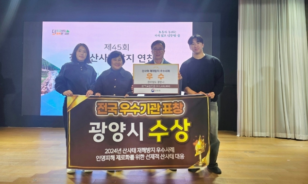 이강성 산림소득과장은 “이번 수상은 광양시의 체계적인 산사태 관리 능력과 유관기관 간 구축해놓은 유기적인 협력체계, 주민들의 협조로 이뤄낸 성과다. 앞으로도 지속적으로 산사태 재해예방 및 대응 능력을 강화해 나가겠다”고 말했다.