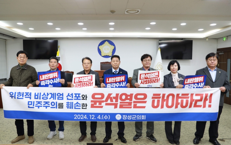 장성군의회는 4일 성명서를 통해 윤석열 대통령의 비상계엄령 선포는 헌법과 민주주의를 전면으로 부정하고, 국민의 자유를 억압하며, 헌정 질서를 붕괴시키려는 위헌적·위법적 행위라고 비판했다.