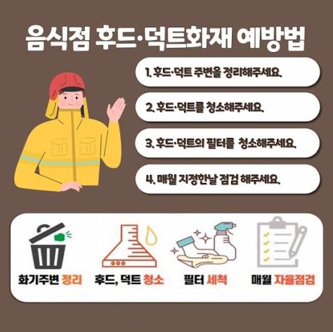최진석 서장은 “음식점 주방은 화재 위험이 높은 장소 중 하나로, 주방 내 후드와 덕트 관리가 화재 예방의 핵심입니다. 간단한 관리와 점검만으로도 큰 화재를 막을 수 있으니, 음식점 관계자 여러분께서는 안전 수칙을 철저히 지켜주시길 바랍니다”라고 당부했다.