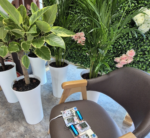 순천미래과학고 ‘클린에어 미래교실’팀은 미세먼지 측정 센서를 활용하여 공기정화식물의 배치가 미세먼지 농도에 미치는 영향을 연구했다.