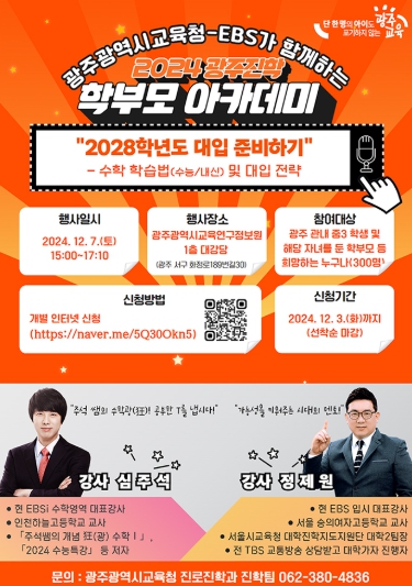 한편 2024 광주진학 학부모 아카데미는 이번 6차를 포함해 총 2천200여 명의 학부모가 신청하는 등 인기를 끌었다.