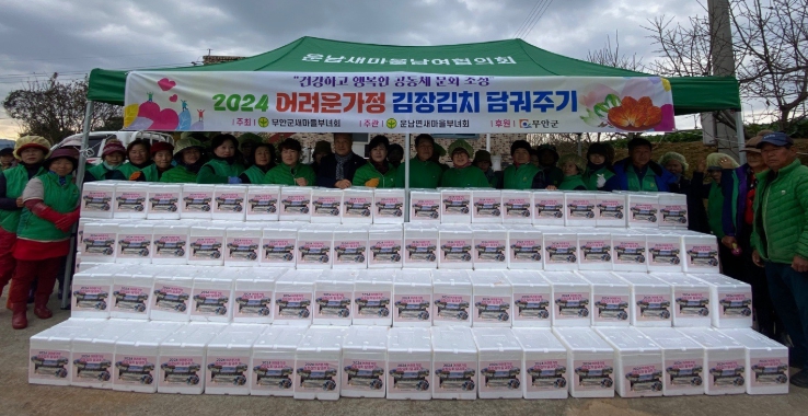 이날 행사는 새마을부녀회원을 비롯한 새마을지도자, 관내 기관사회단체장 등이 참석하여 배추 700여 포기를 담가 각 마을 취약계층과 경로당 등 100여 가구에 전달하고 안부를 살폈다.