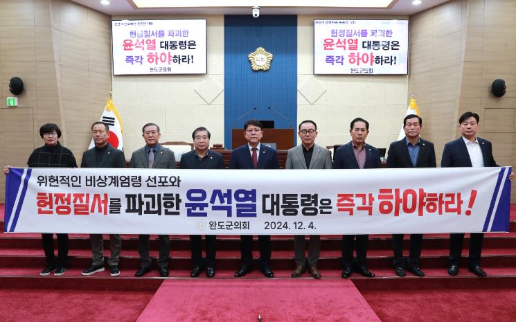 이에 완도군의회는 성명서를 통해 헌법과 민주주의를 훼손한 이번 사태에 대해 다음과 같은 입장을 강력히 밝혔다.