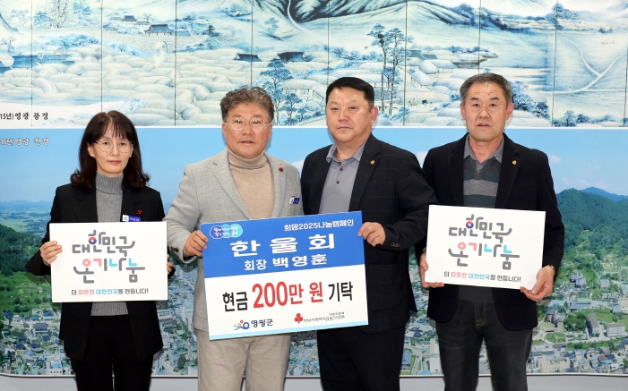 한울회는 영광군에 거주하는 1965년생 또래 모임으로 백영훈 회장을 비롯한 59명의 회원이 활동하고 있으며 고향 영광의 발전을 위해 노력하는 모임으로 2023년 150만 원을 기탁한데 이어 올해도 어려운 이웃을 위해 성금을 기탁하여 지역사랑을 실천하고 있다.