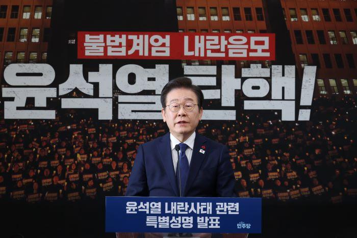 이 대표는 이날 서울 여의도 국회에서 발표한 ''윤석열 내란 사태 관련 특별성명'을 통해 "최대한 빠른 시간 내에 직무에서 배제하고 그 직의 유지 여부를 우리 국민들의 판단과 결정에 맡겨야 한다"며 이같이 밝혔다.
