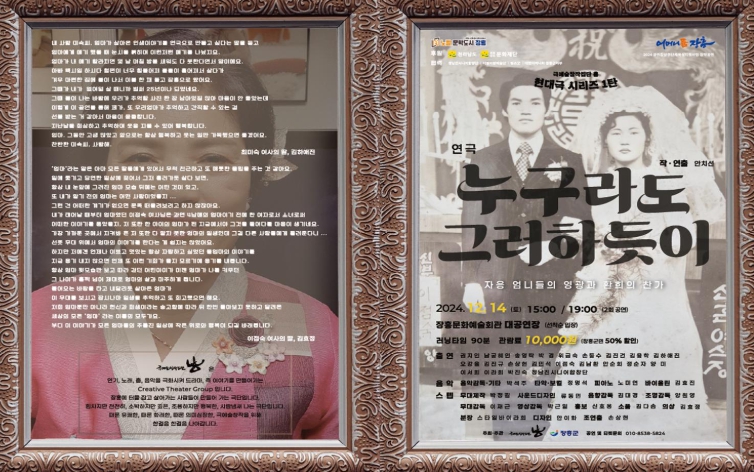 이번 공연은 장흥에서 나고 자란 칠순잔치를 앞둔 이점숙 여사의 인생이야기 사실에 기반을 둔 창작공연이다.