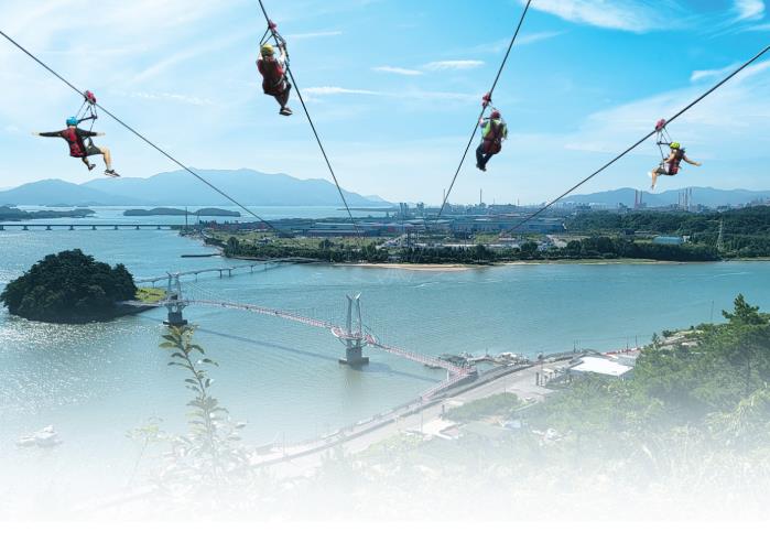 광양 짚와이어 ‘섬진강 별빛 스카이’는 망덕산과 배알도 수변공원을 잇는 898m 규모 짚와이어다.